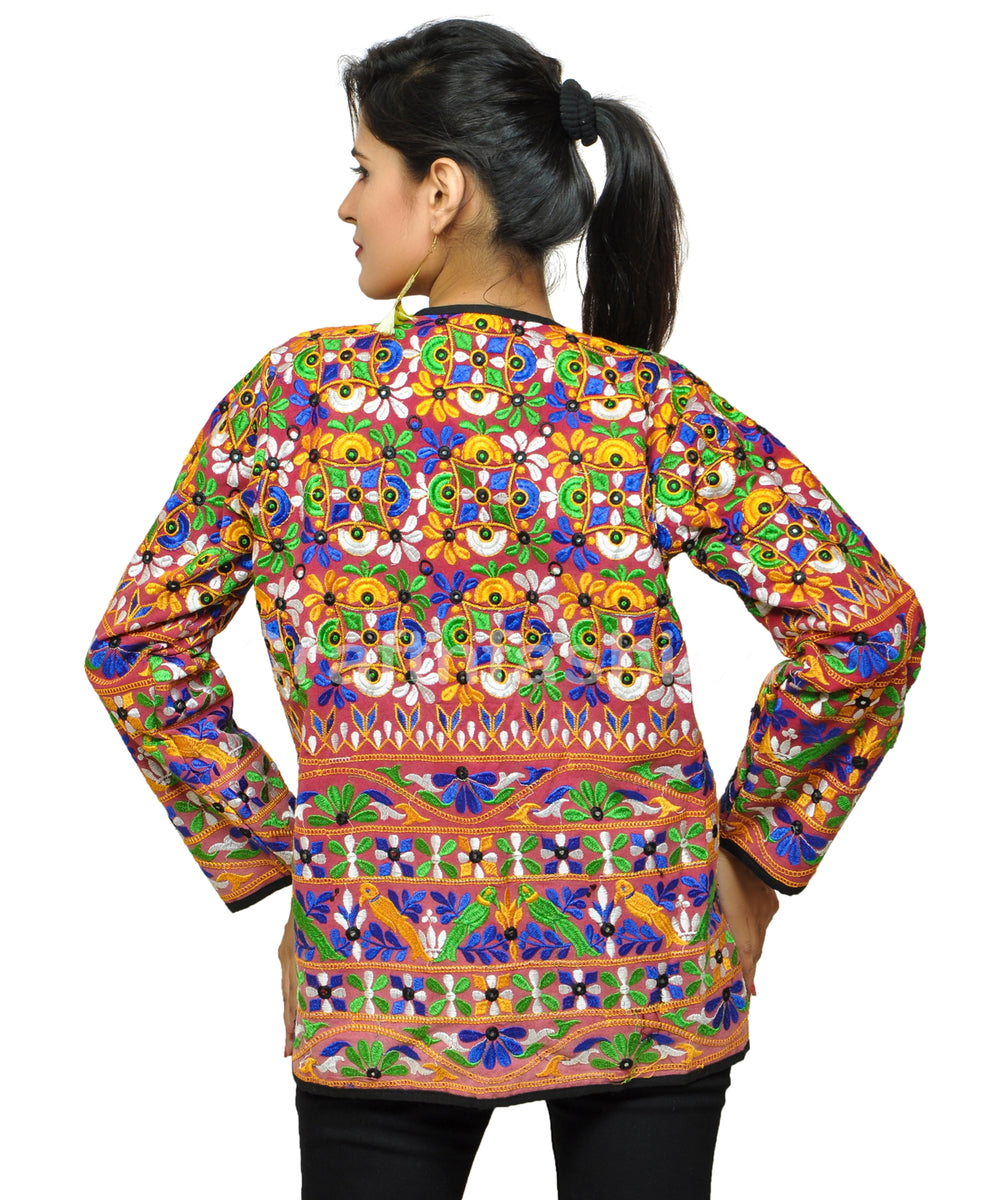 Indian Hand Embroidery Mirror work Jacket Crafted By Skilled Indian Gujarati Artisan Having both the Side Embroidery Work with Bright & Eye catchy Look.