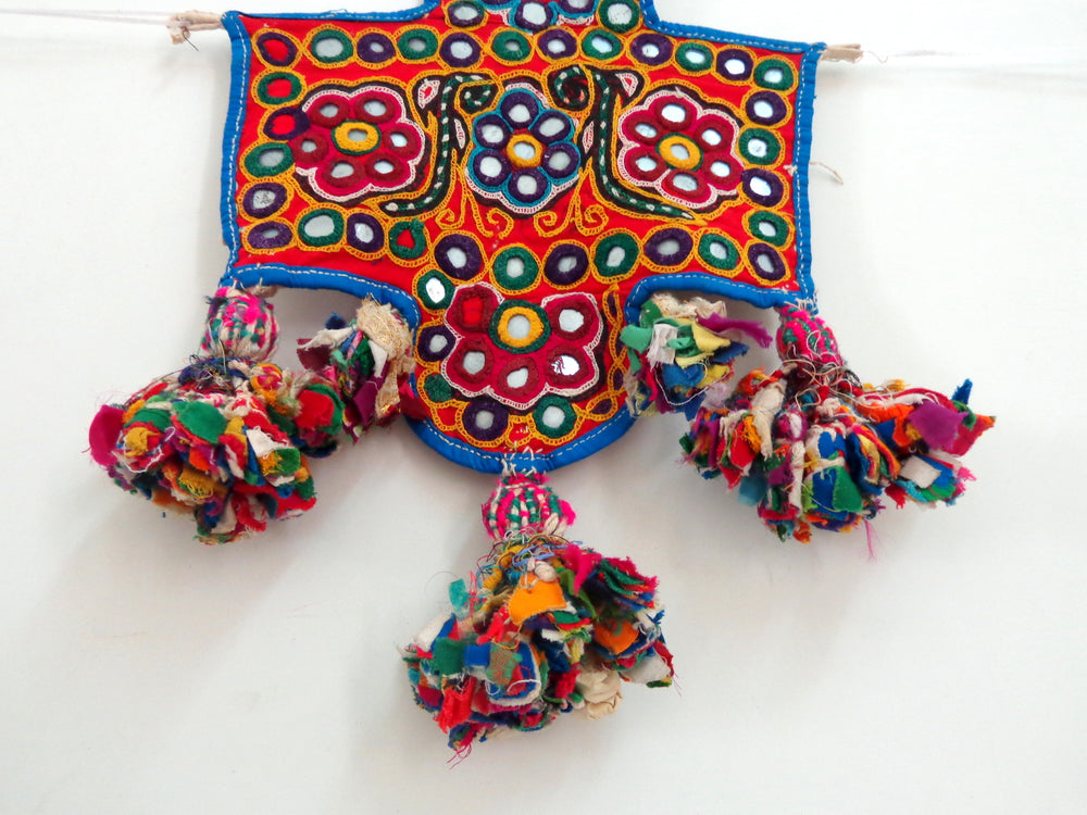 An original Hand embroidered Rabari gate from the rural areas of India.Add Indian colors to any room, wall, bedside, doorway, with this valance.With beautiful color and designs, this is a beautiful piece to help decorate a home or yoga studio.Use in your bohemian house, kid's bedroom or temple space and great for festivals and camping