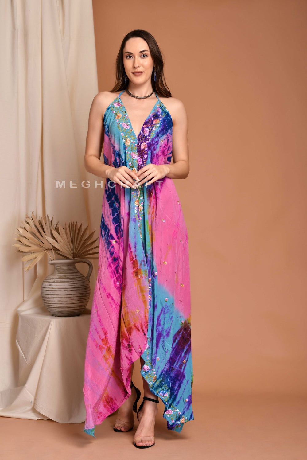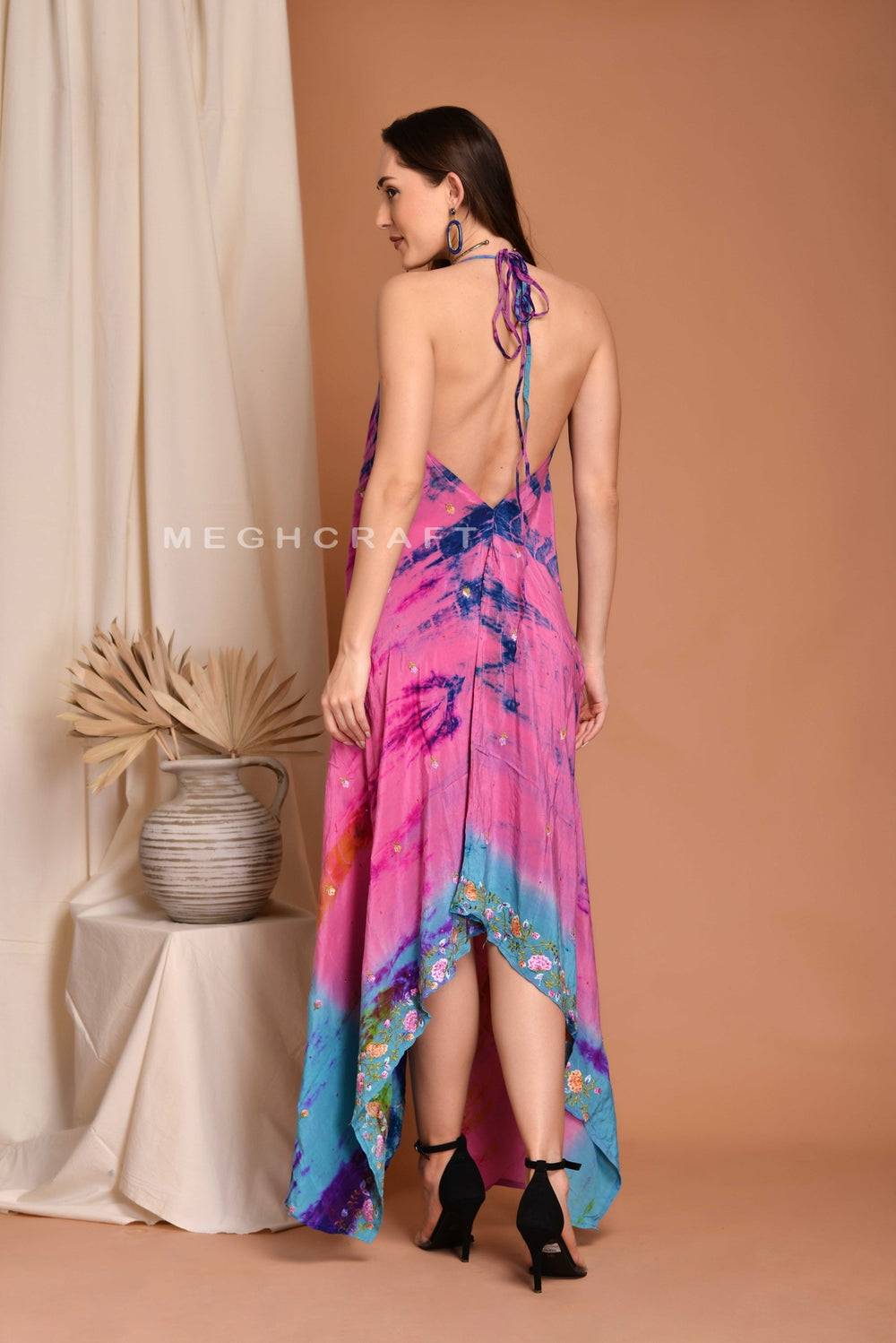 Exclusive Tie Dye Hippie Festival Wear Vintage Embellished Beaded Hand work sari made Boho Beach Party Wear Dress, it is completely original and one-of-a-kind Dress.