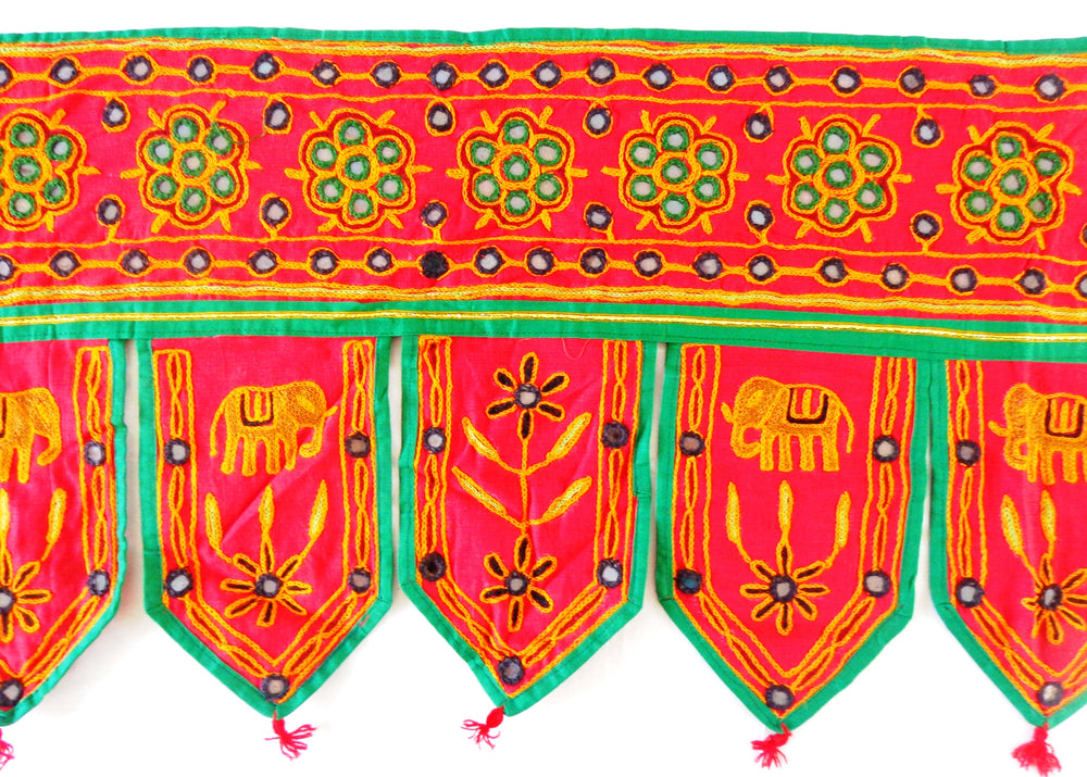 An original Hand embroidered Rabari gate from the rural areas of India.Add Indian colors to any room, wall, bedside, doorway, with this valance.With beautiful color and designs, this is a beautiful piece to help decorate a home or yoga studio.Use in your bohemian house, kid's bedroom or temple space and great for festivals and camping