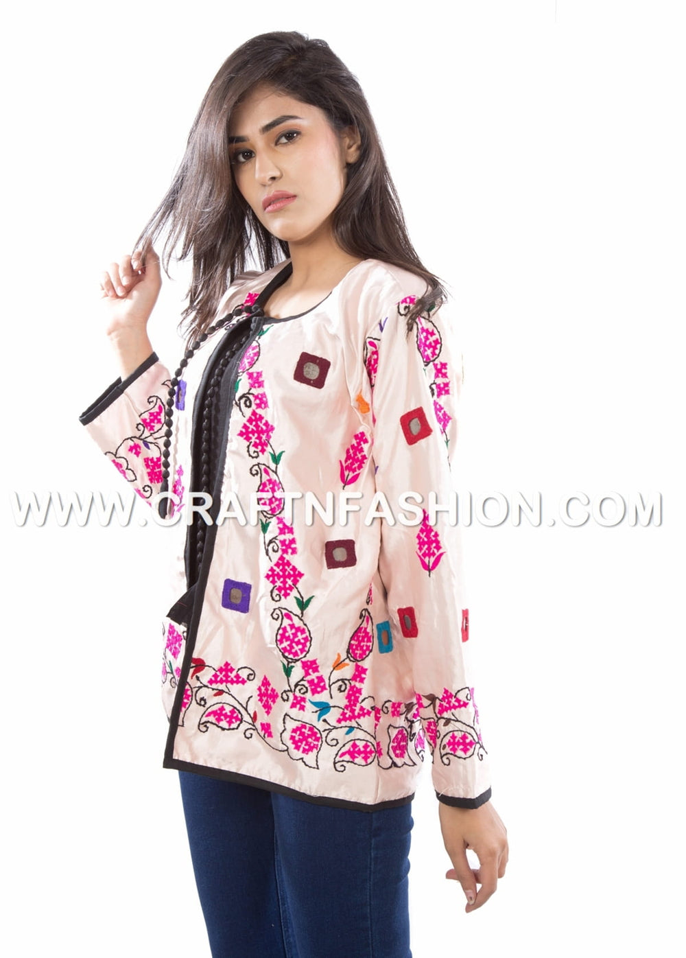 Indian Hand Embroidery Mirror work Jacket Crafted By Skilled Indian Gujarati Artisan Having both the Side Embroidery Work with Bright & Eye catchy Look.