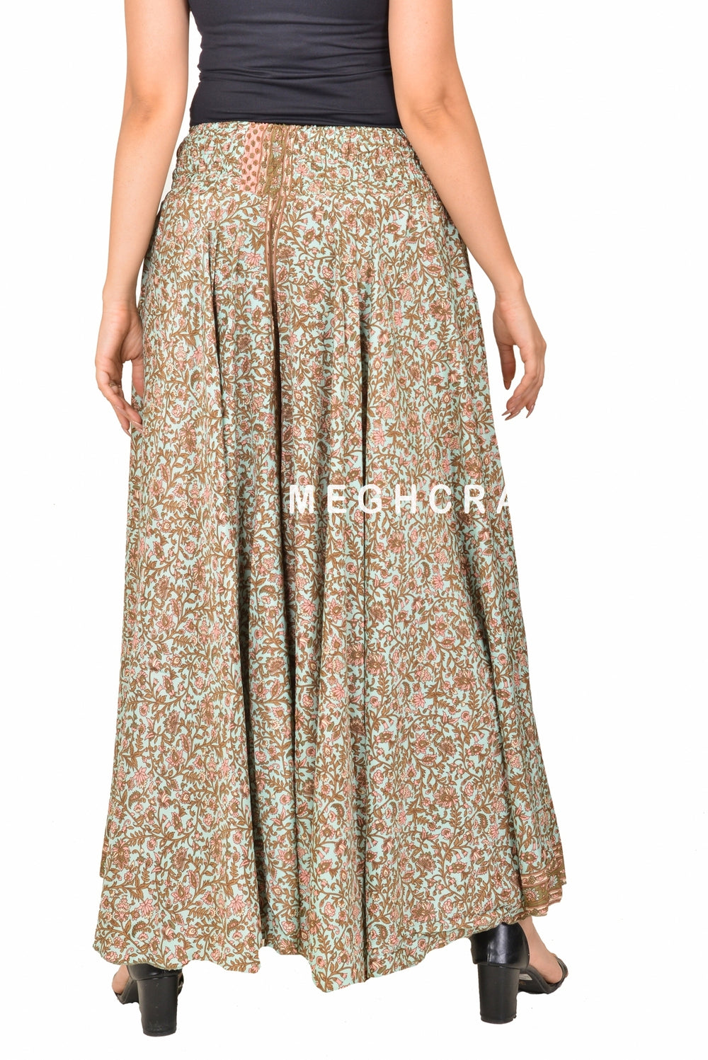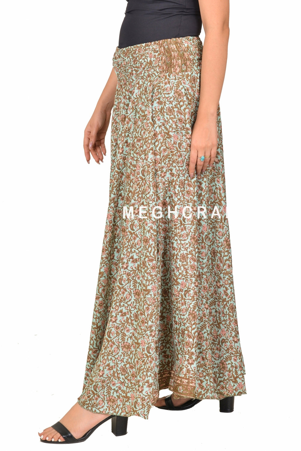 Indian Designer Silk Wide Leg Trouser Palazzo Pant with Smocked Waist Free Size.