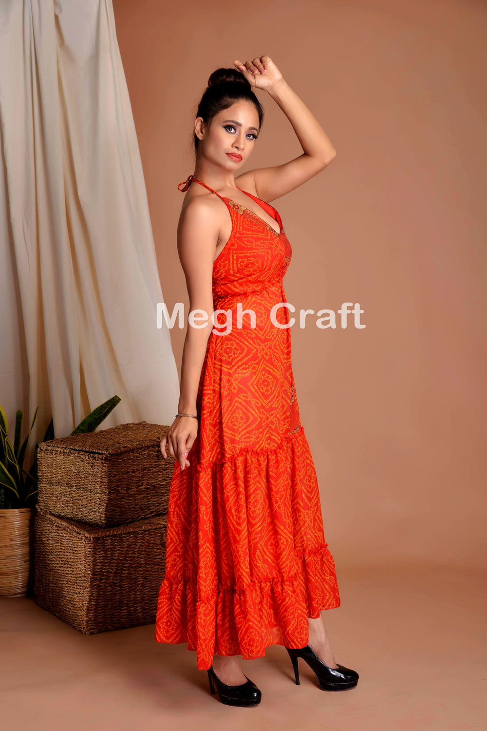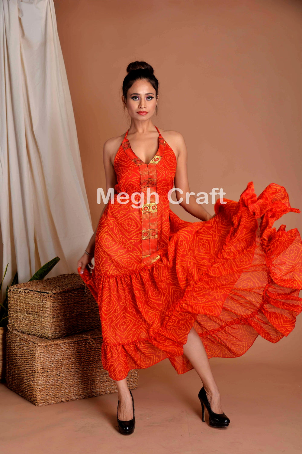 Designer Indian Chiffon Bandhani/ Bandhej Beach Wear Halter Neck long maxi Dress.