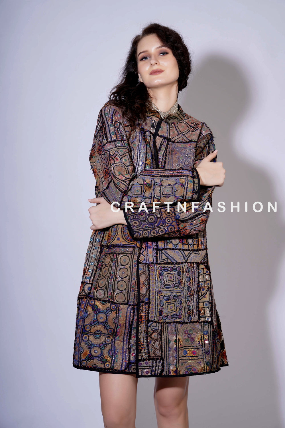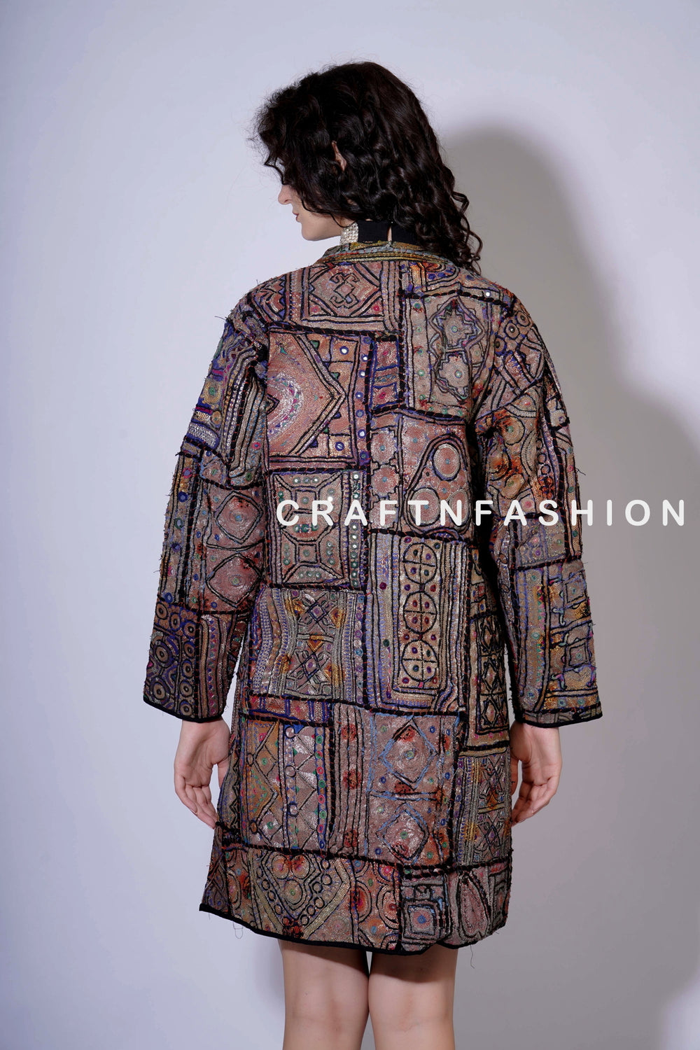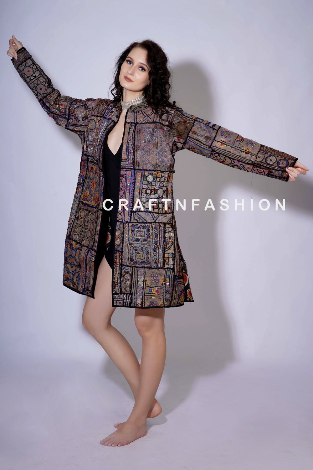 Patch Work Long Jacket. Embroidered Women Jacket, Handmade Jacket.