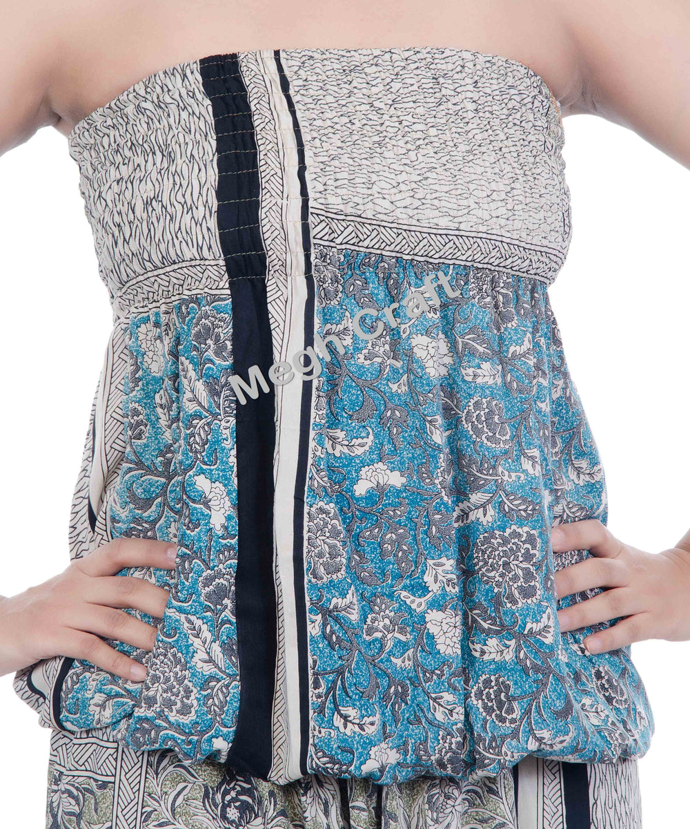 Designer Summer fashion wear Recycled Vintage Silk Sari Halter Neck Women jumpsuit , Smocked Jumpsuit.