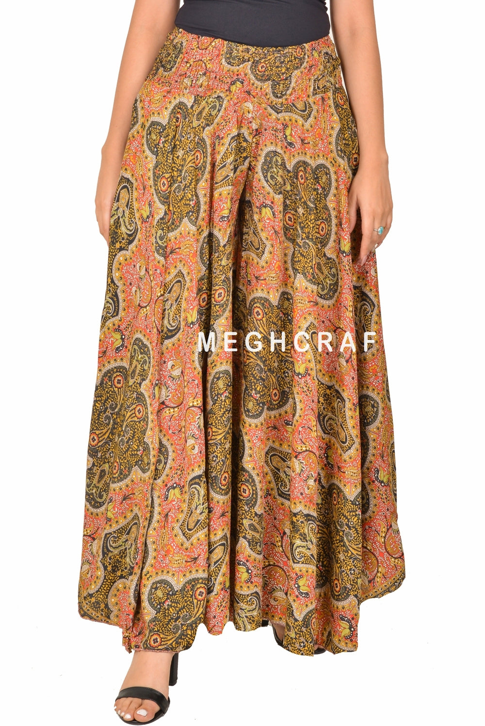 Indian Designer Silk Wide Leg Trouser Palazzo Pant with Smocked Waist Free Size.