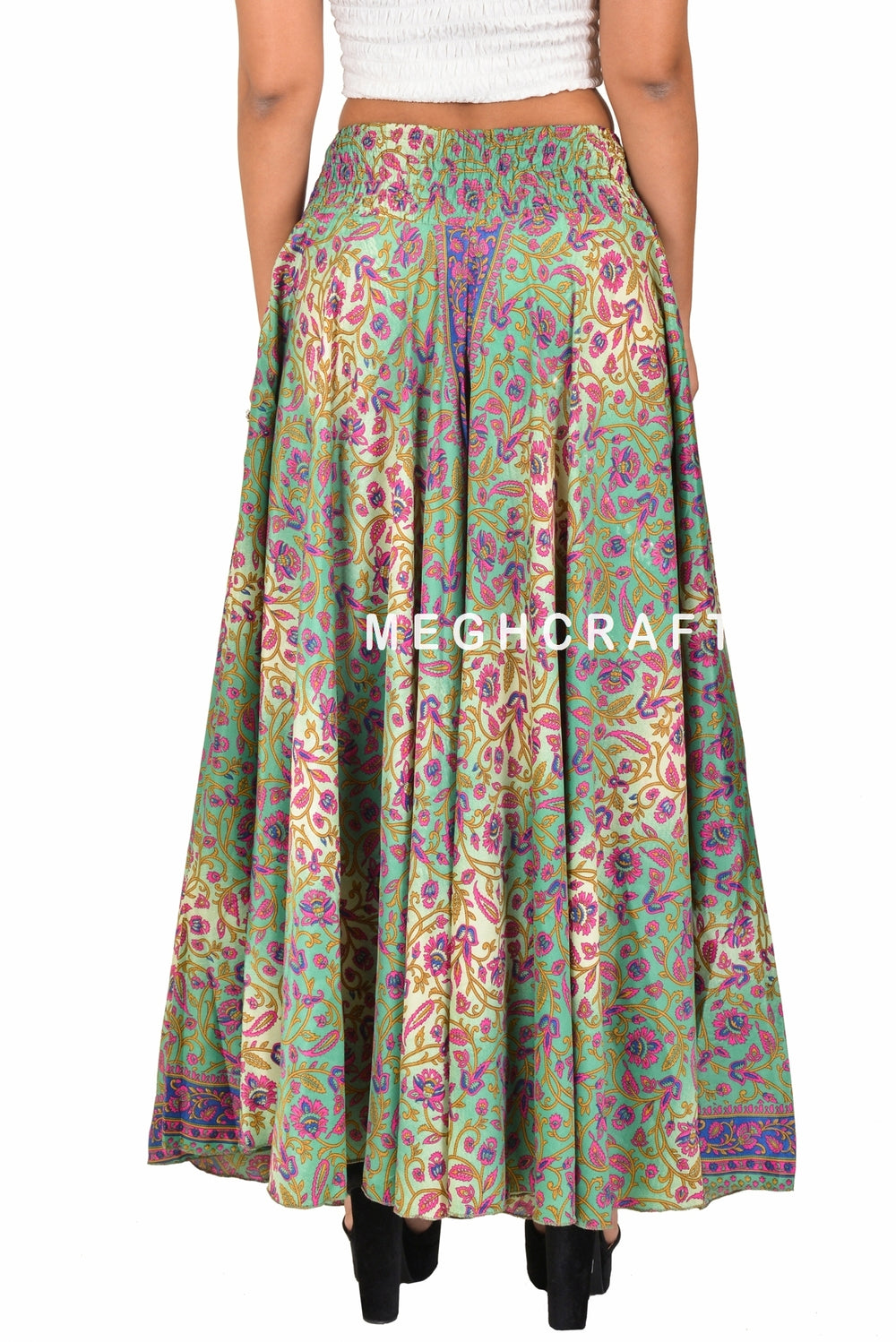 Indian Designer Silk Wide Leg Trouser Palazzo Pant with Smocked Waist Free Size.