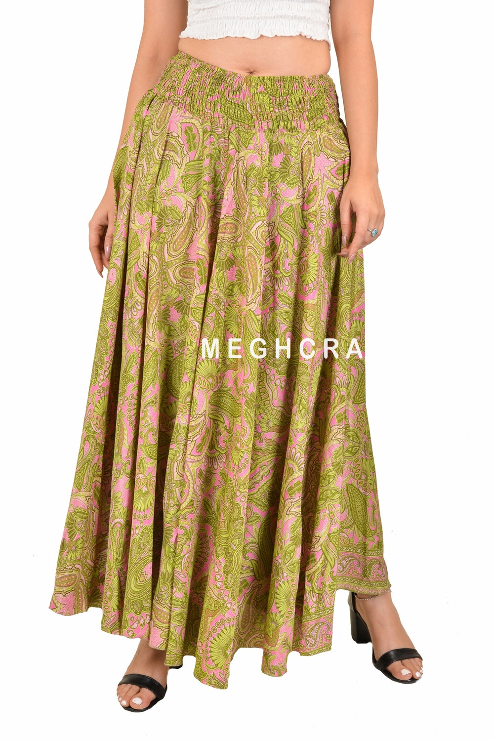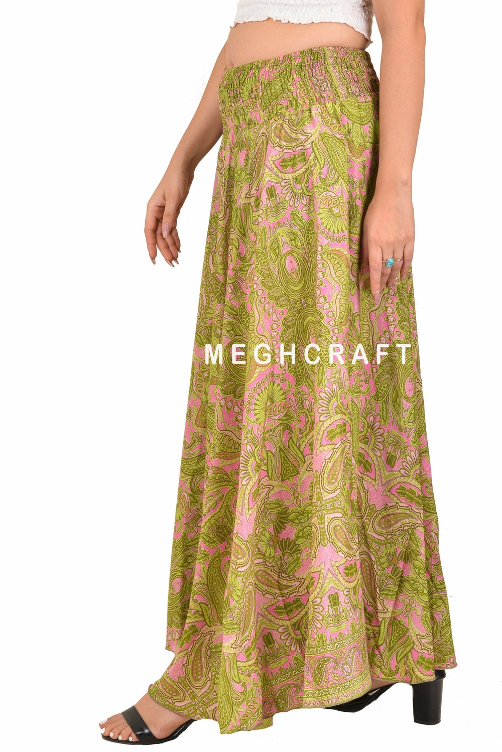 Indian Designer Silk Wide Leg Trouser Palazzo Pant with Smocked Waist Free Size.