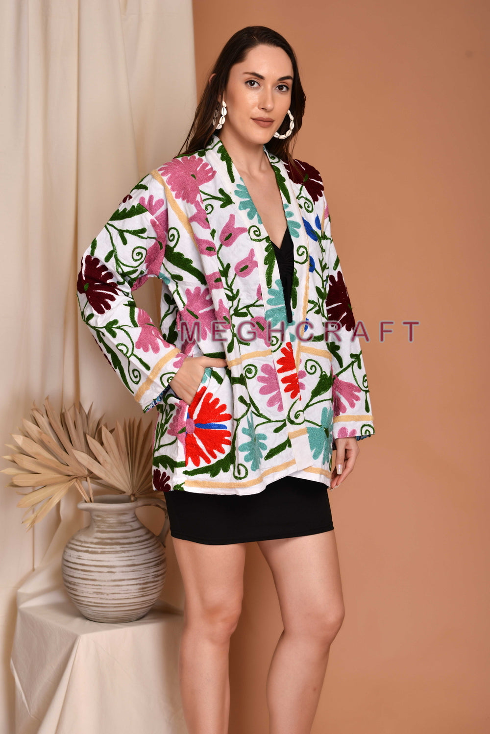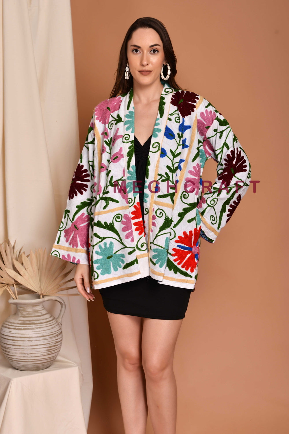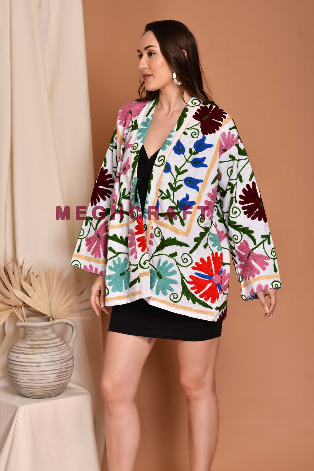 Exclusive Cotton Suzani Embroidered Short Jacket, Boho Chic Embroidery Cotton Jacket. Embroidered Women Jacket, Handmade Jacket.