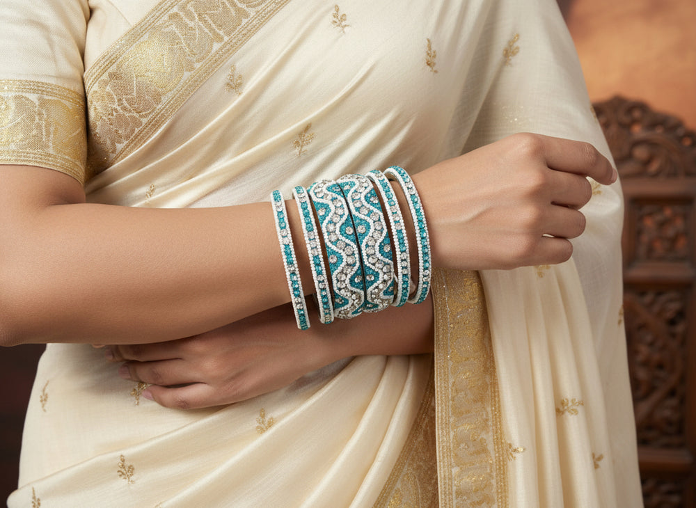 Upgrade your collection with our Indian Traditional Stone - Rhinestone Work Lacquer Bangles, crafted with vibrant colors, sparkling stones, and classic ethnic detailing.
