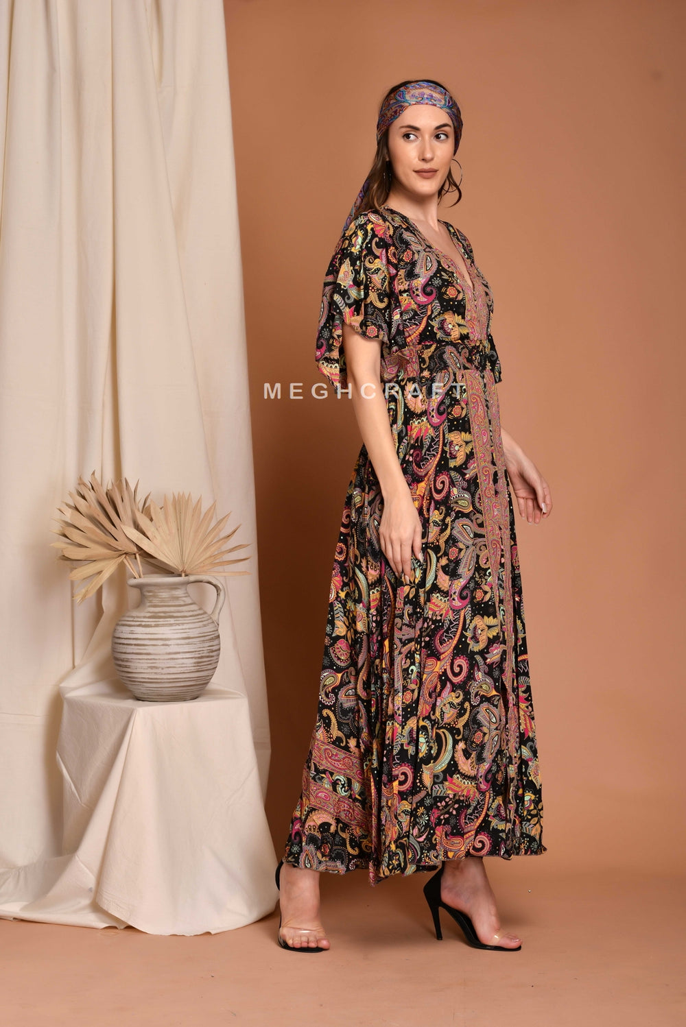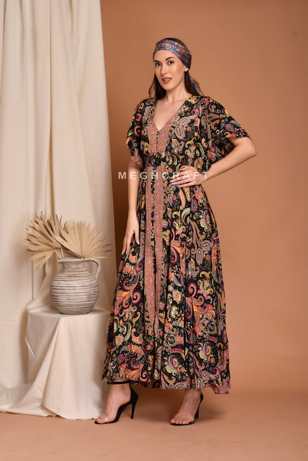 Latest Designer Summer fashion Bohemian V Neck maxi dress. Best Suitable for Summer fashion , Bohemian style , Beach Wear , Dance costume & urban fashion style.
