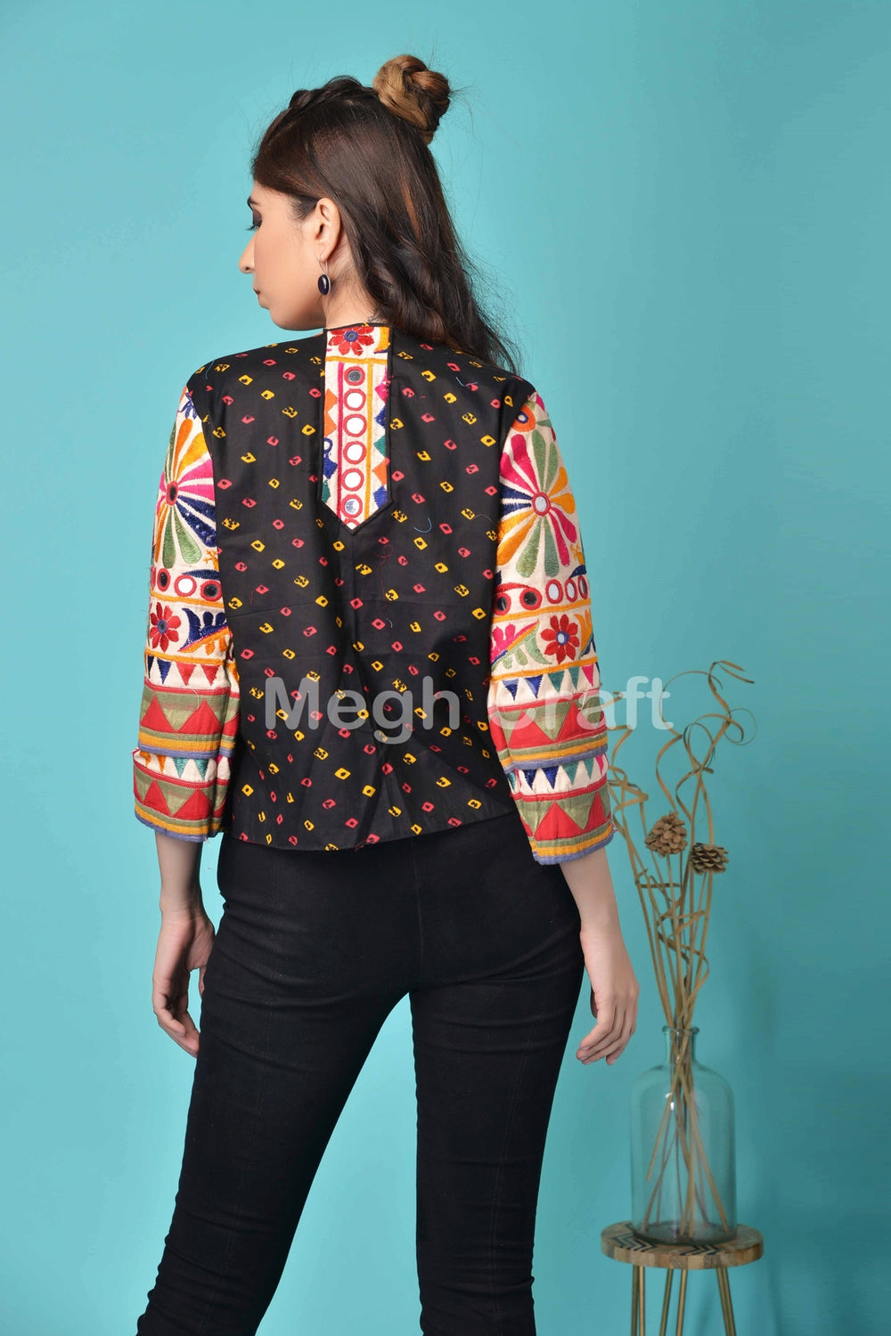 Gujarat Rabari Hand Embroidery Bandhni Cotton Bomber Jacket -Waist Coat Crafted By Skilled Artisan with Bright & Eye catchy Look.