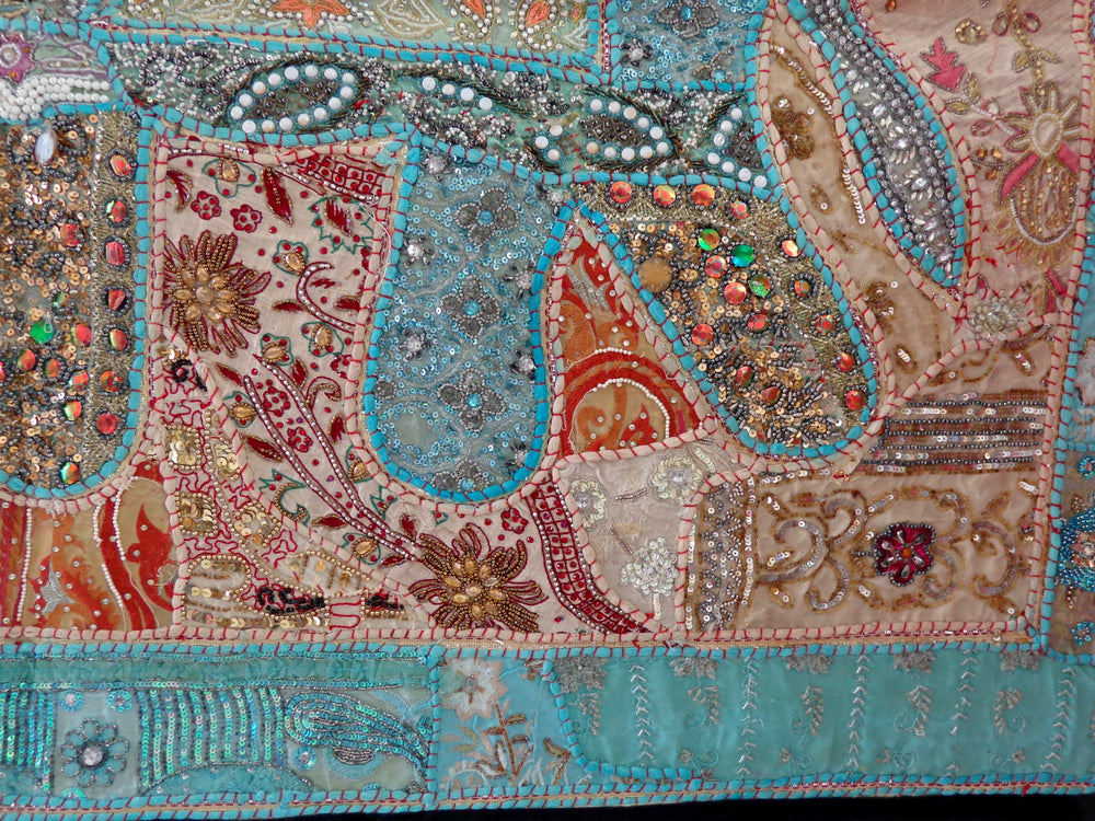 It is made from Vintage Antique Beaded, Embellished, Embroidered Yokes, Sari Border and Patches & joint with handmade cotton thread strings which will enhance the beauty of this Antique Masterpiece Wall Tapestry. Hence it is made from collectible vintage pieces there will be some imperfections which will not considered as a Damage or Defective. It is a Beauty of Vintage Antique Collection.