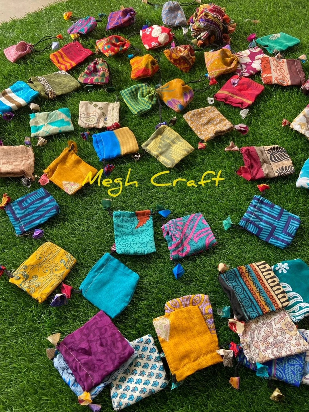 It will be comes in a mix lot of assorted Prints, colors and sizes. It is made from recycled cut pieces of poly crepe silk vintage saree.