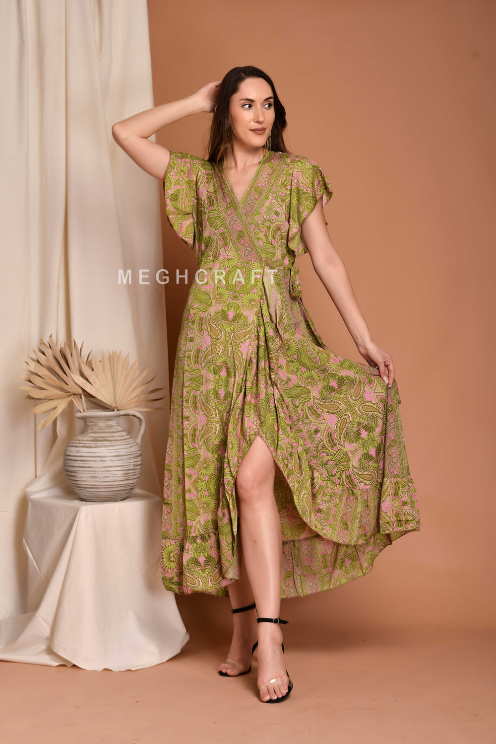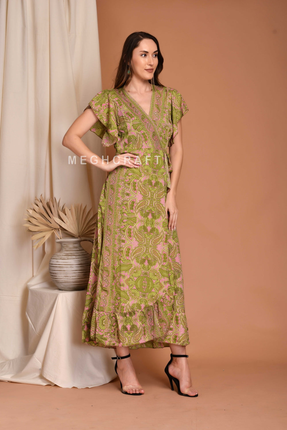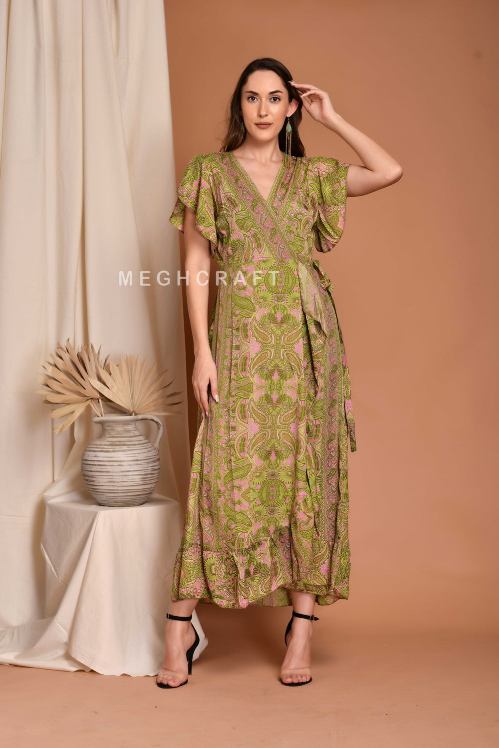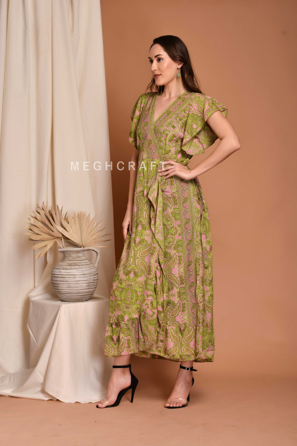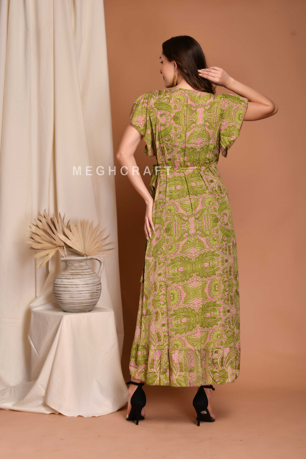 Indian Designer Long Floral Printed Wrap around Kimono Robe Cardigan.