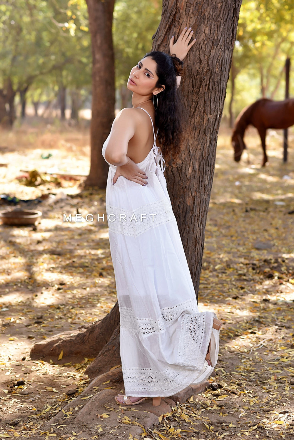 Designer Schiffli Embroidered Cutwork Midi Dress. Best Suitable for summer wear ,beach wear ,wedding wear, bridesmaid's dresses & fashion wear.