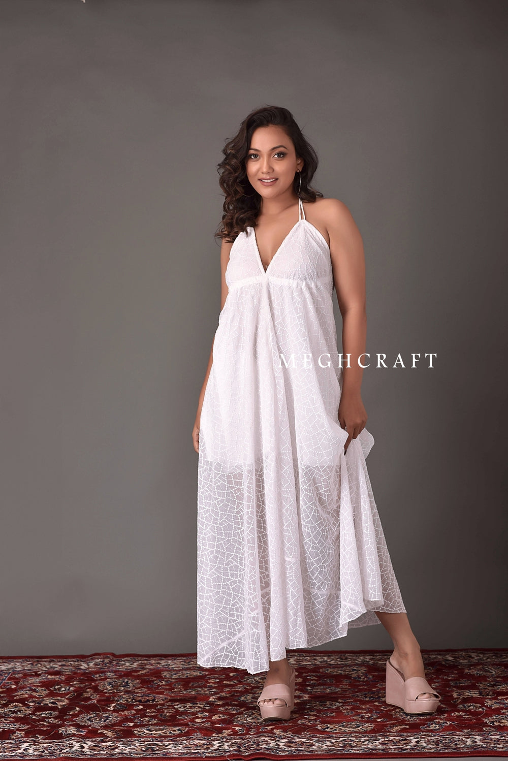 Designer Chiffon Sequin Embroidered Halter Maxi Dress. Best Suitable for Beach party wear , Cocktail Party, Evening wear , Club wear , Party wear & More.