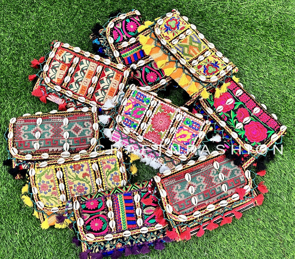 Exclusive Bohemian Fashion Banjara Patchwork Sling Bag Embellished with Shells and Fringe. It will come in Assorted Colors, Designs & Patterns.