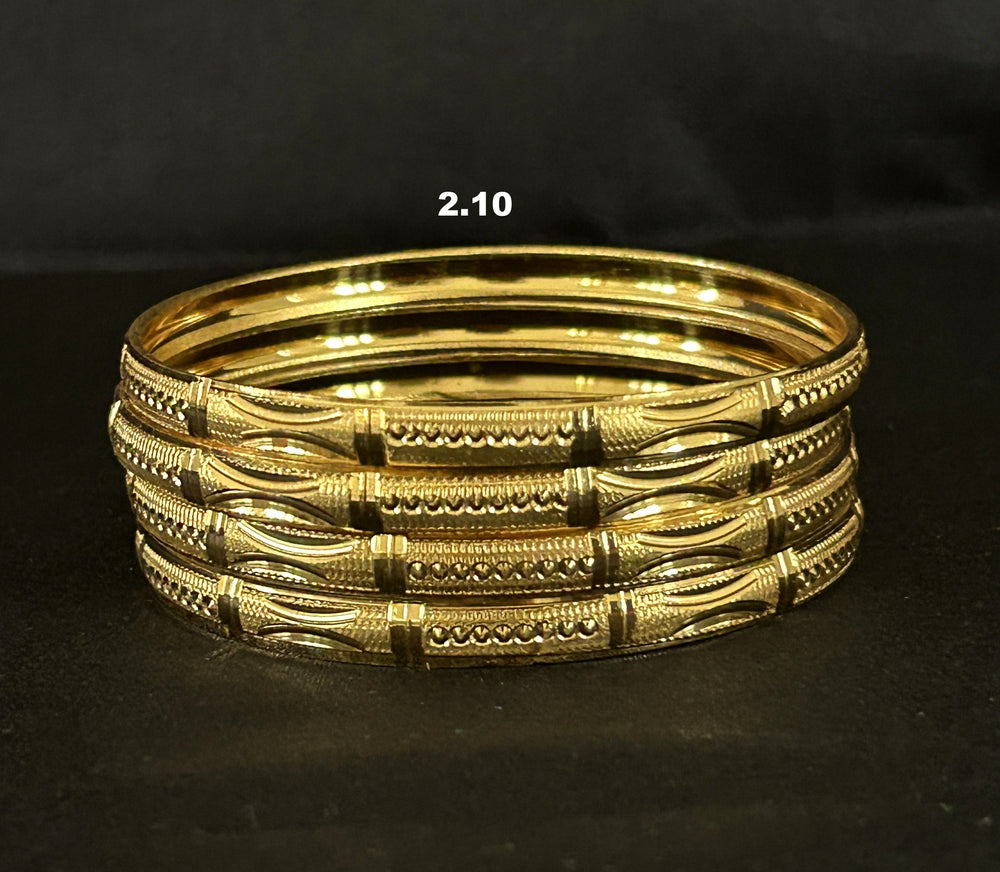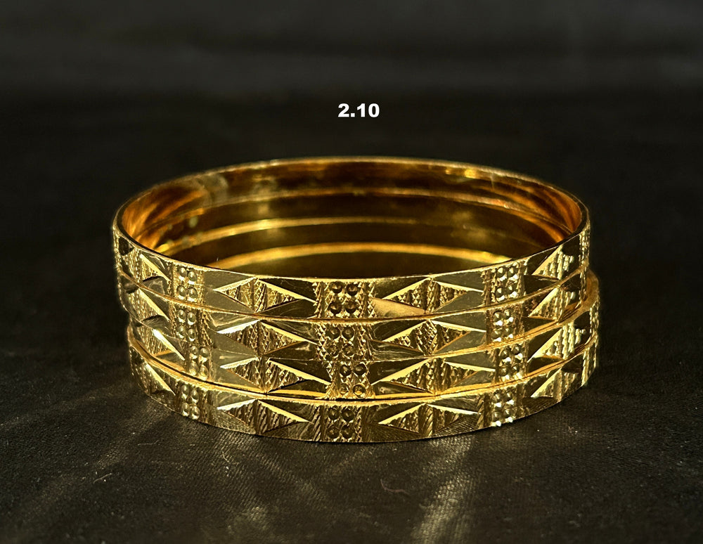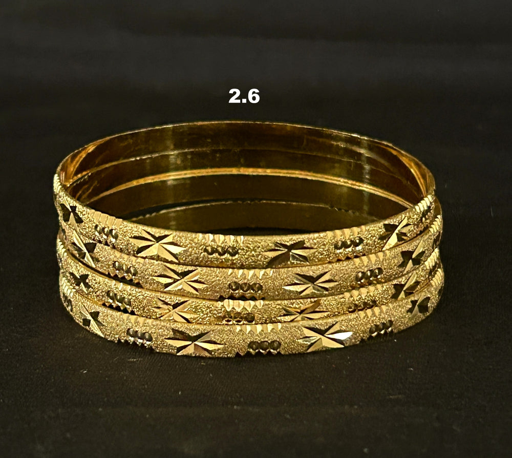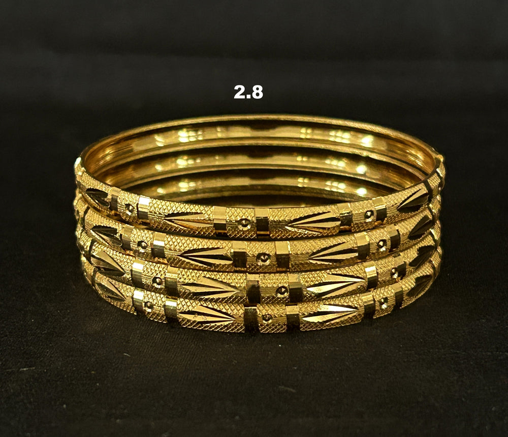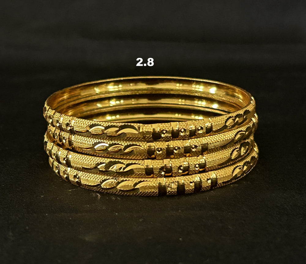 Wholesale Indian Traditional Gold plated Bangle Set of 4pcs . Last stock of 16sets of Bangles as per image. Please refer attached image for designs & size reference.