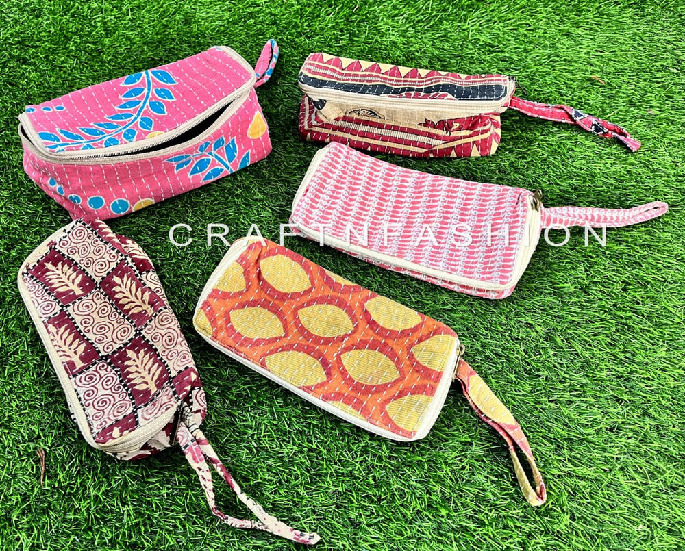 Wholesale Assorted Indian Handmade Embroidered Kantha Pouch, Utility Pouch, Makeup Pouch, Toiletry Bag, Coin Pouch, Kantha Cotton Pouch, Cosmetic Pouch, Vintage Kantha Pouch.