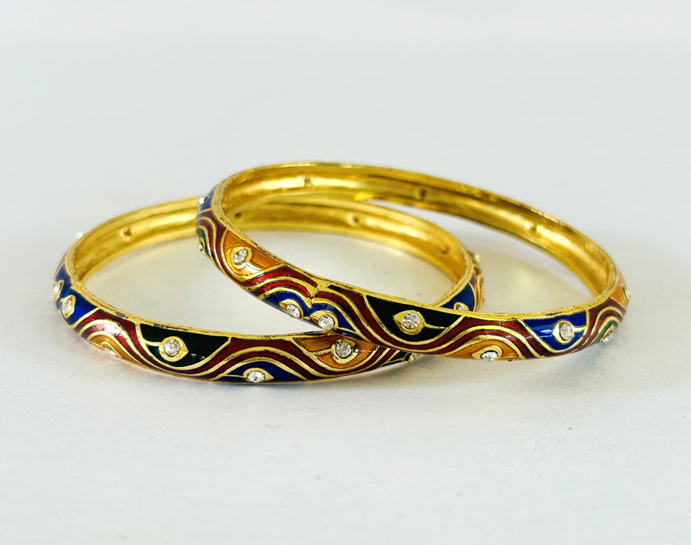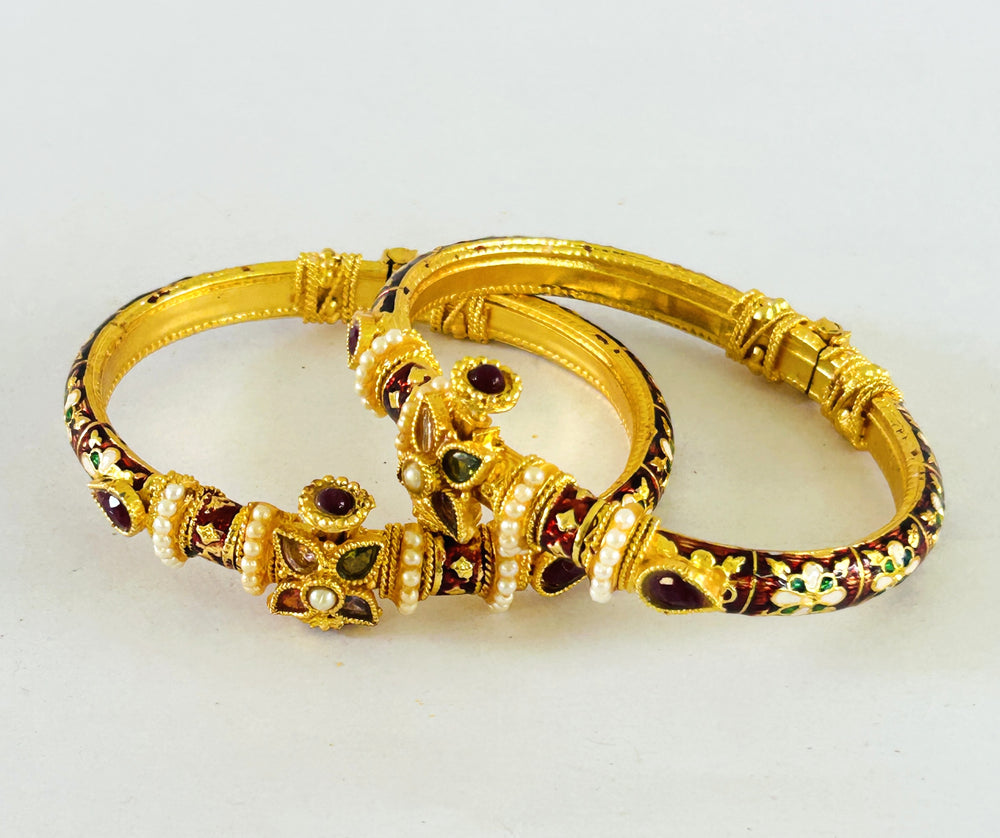 Wholesale Indian Traditional handcrafted kundan polki meenakari screw openable bracelet Gold Plated - LAST STOCK OF 10pairs of Bracelets as per image. Size : 2.4,2.6,2.8 . It will comes in assorted sizes as per ready stock. Designs of Meenakari Enameled Bracelets 9 Pairs + 1 Pair of Meenakari Bangle.