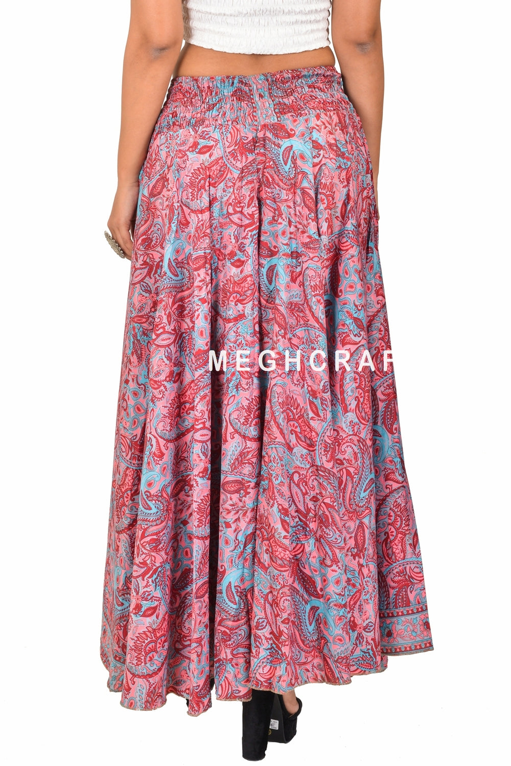 Indian Designer Silk Wide Leg Trouser Palazzo Pant with Smocked Waist Free Size.