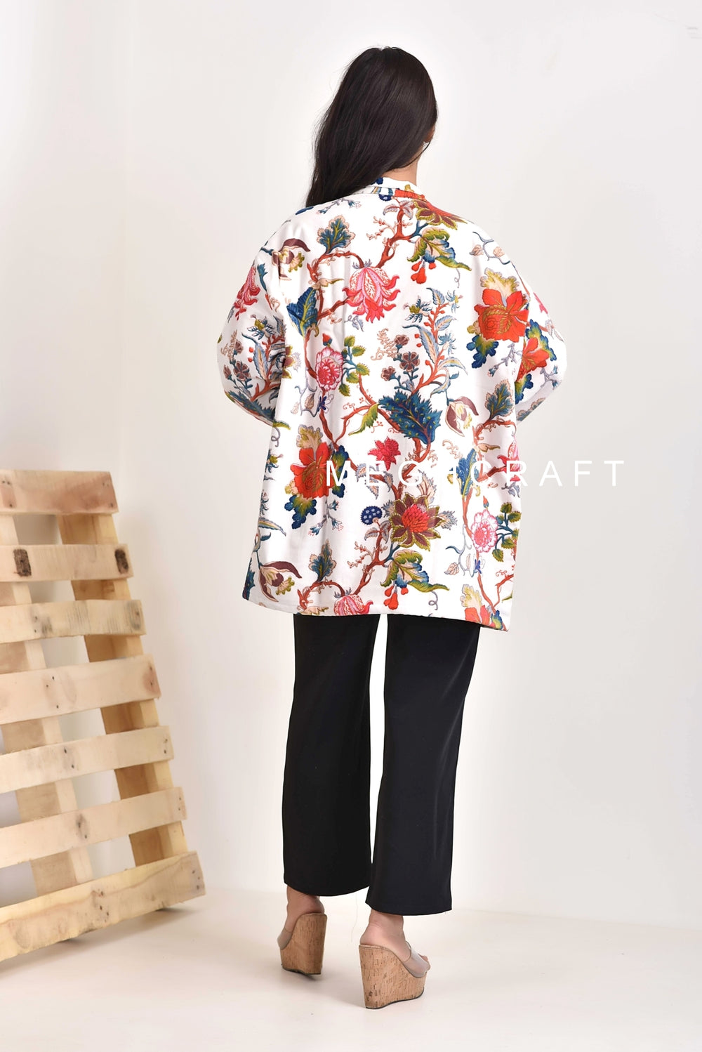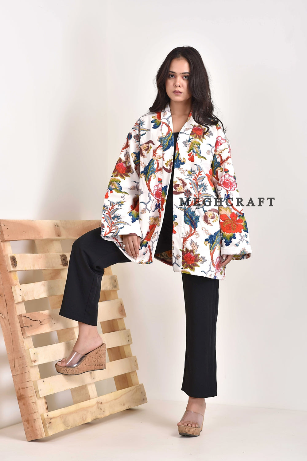 Designer Winter-Fall-Spring Special Velvet Jacket Kimono Robe Coat with matching Belt , Block Printed Lining.