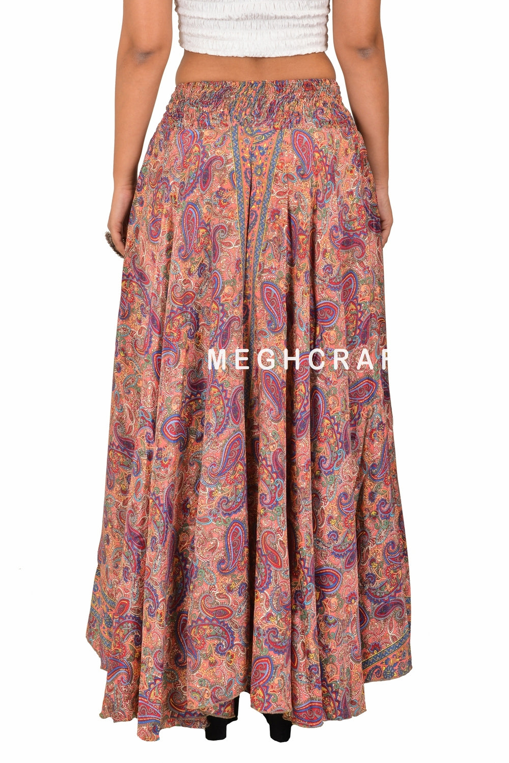 Indian Designer Silk Wide Leg Trouser Palazzo Pant with Smocked Waist Free Size.