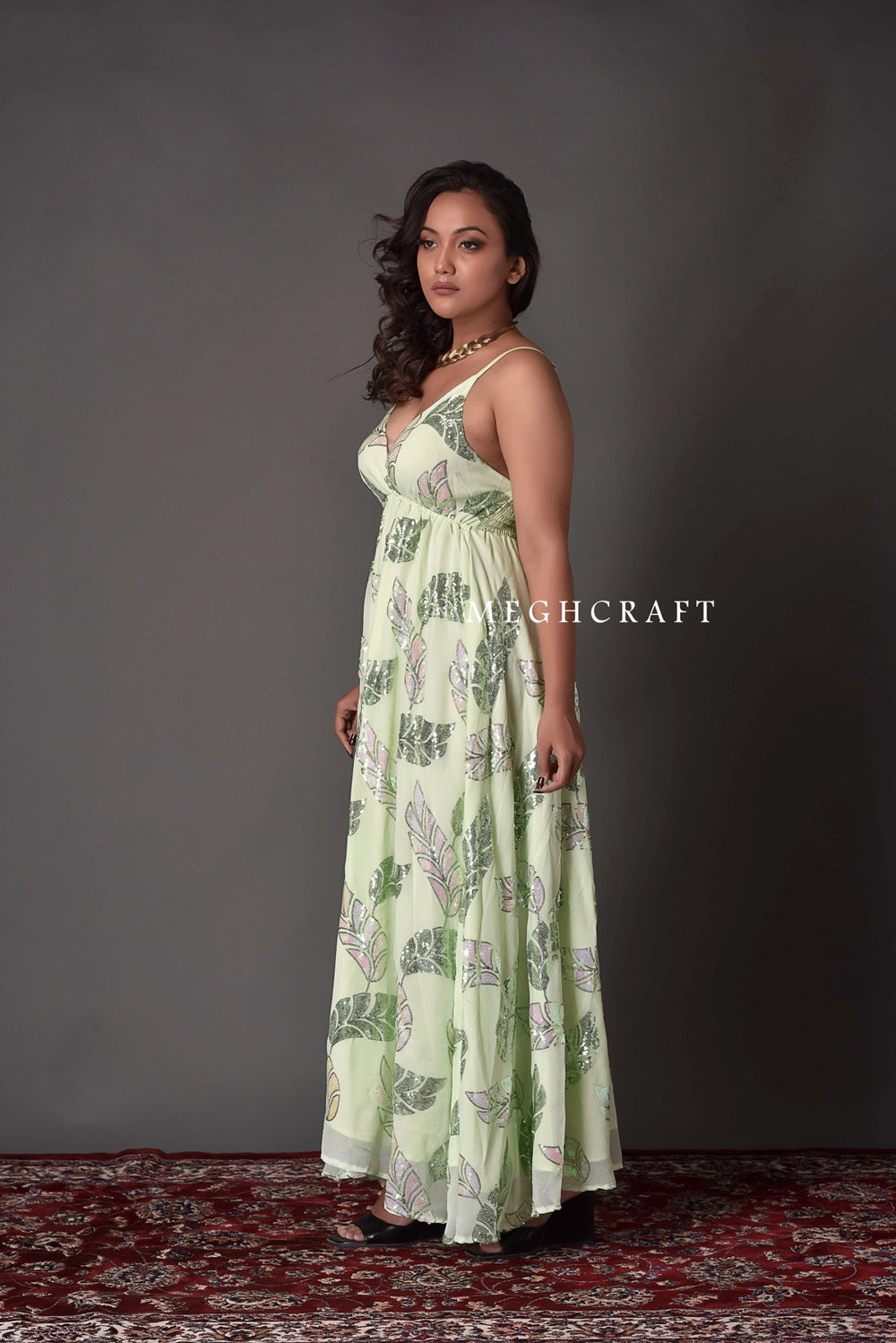 Designer Chiffon Sequin Embroidered Halter Maxi Dress. Best Suitable for Beach party wear , Cocktail Party, Evening wear , Club wear , Party wear & More.